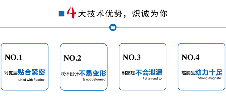 ZMD襯氟自吸磁力泵是我公司新一代耐腐蝕自吸磁力泵,它不但集氟塑料磁力泵的優(yōu)點(diǎn)于一身,而且具有自吸功能、無泄漏,這是以往的所有氟塑料磁力泵不能達(dá)到的,因此,該系列泵一推出就受到了廣大用戶的歡迎。該系列泵可廣泛適用于化工、有色金屬冶煉、農(nóng)藥、制酸制堿、造紙、酸洗工藝、稀土分離、電鍍、電子、化成箔、卸酸堿等行業(yè)或工作流程,是目前磁力泵品種中結(jié)構(gòu)新穎的產(chǎn)品之一,且高效節(jié)能、安全實(shí)用。