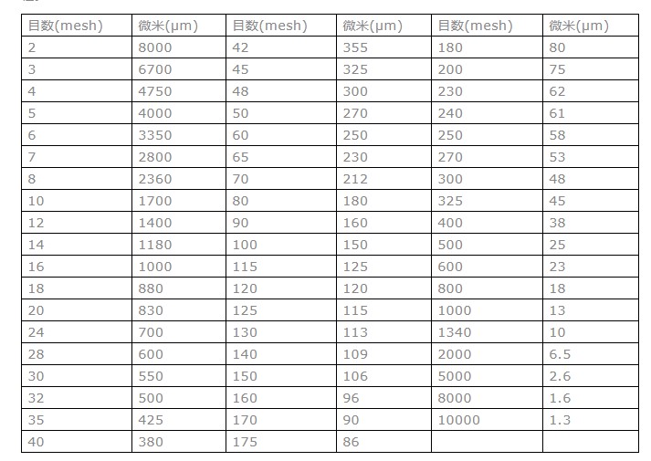 目是什么單位?篩網(wǎng)過濾網(wǎng)目數(shù)與粒徑(μm)關(guān)系?